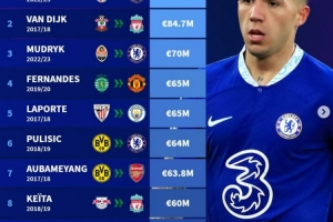 体育资讯1月8日讯 德转盘点了英超历史在冬窗引援转会费榜单,其中恩佐1.21亿欧居首,以下为具体榜单: