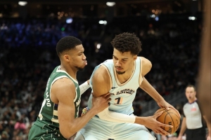 谈到文班,字母哥说道:“他是一个不可思议的天才,他可能是我看过的电视上最有天赋的球员之一,也是我对抗过的最强球员之一。这是他在联盟的第二个赛季。他比第一年好得多。他会不断进步。他有一个非常非常光明的未来。他只需要继续提升自己的技术,提升自己,以快乐的心态打球就行。”