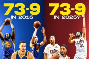 美媒ClutchPoints:“目前骑士(32胜4负)胜率89%和15-16赛季73胜的勇士一样。他们本赛季能追平甚至打破73胜纪录吗?”