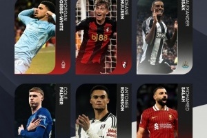体育资讯1月9日讯 PFA(英格兰职业球员工会)公布了英超12月最佳球员的候选名单,萨拉赫、帕尔默、伊萨克等球员入选。