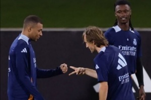 皇马正在备战西超杯半决赛对阵马洛卡的比赛,姆巴佩在社媒晒出与莫德里奇玩石头剪刀布的照片,出了石头的姆巴佩赢了出了剪刀的魔笛。